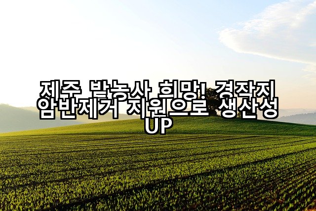 경작지 암반제거 지원 사업은 제주 농업인들에게 주어진 소중한 기회입니다. 척박한 토양 환경을 극복하고 고품질의 밭작물을 생산하여 농가 소득을 증대시키는 것은 물론, 장기적으로는 제주 농업의 경쟁력을 한 단계 높이는 중요한 발판이 될 것입니다. 이 지원을 통해 여러분의 농지가 더욱 비옥해지고, 농기계 손상 걱정 없이 안정적으로 농업 활동을 이어갈 수 있기를 바랍니다.